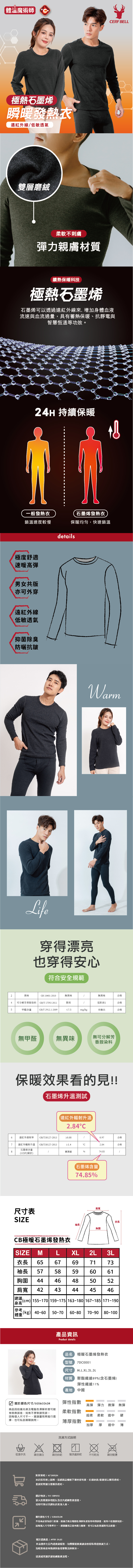 材質特性:高密度石墨烯纖維與極細柔布料融合,遠紅外線蓄熱恆溫,柔軟親膚、保暖同時透氣。