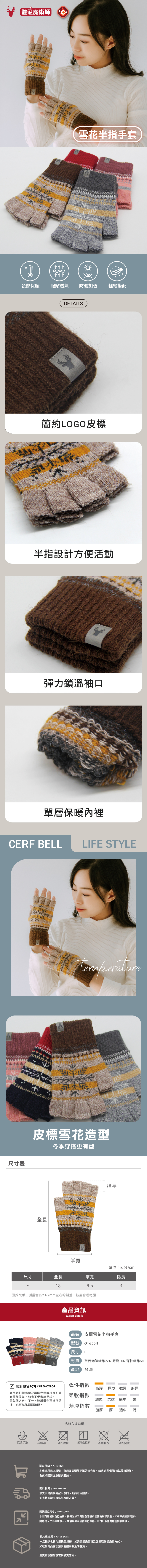 【肌暖】麋鹿雪花皮標針織半指手套丨G1650H