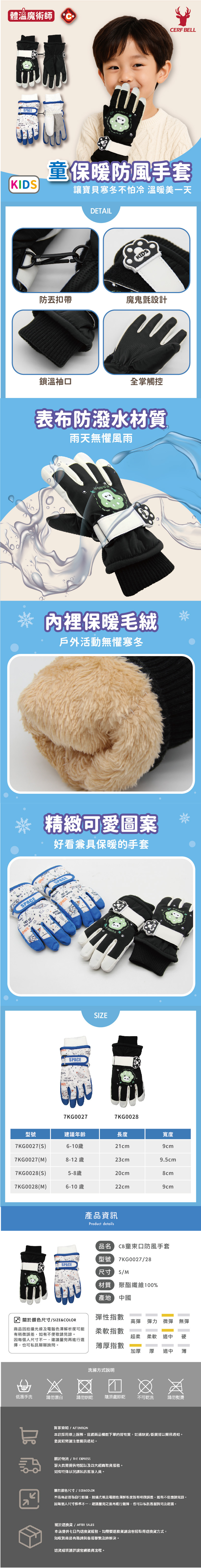 採用防潑水表布結合束口鎖溫袖口,全方位抵禦寒風雨水。全掌觸控與防丟扣帶設計,讓 5-12 歲孩子在冬季探險中,雙手依然靈活溫熱且便利十足。