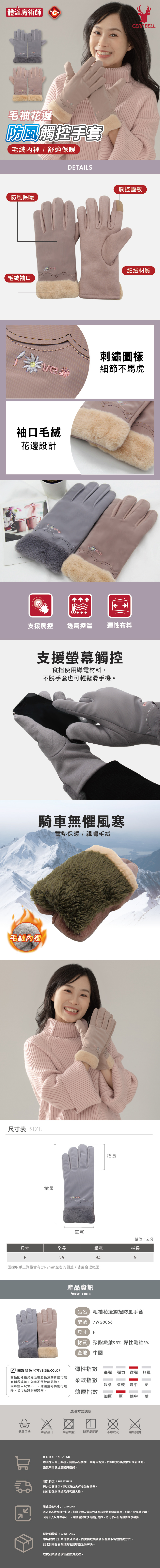 材質特性:柔軟保暖內裡+花邊毛袖設計+刺繡細節+靈敏觸控功能