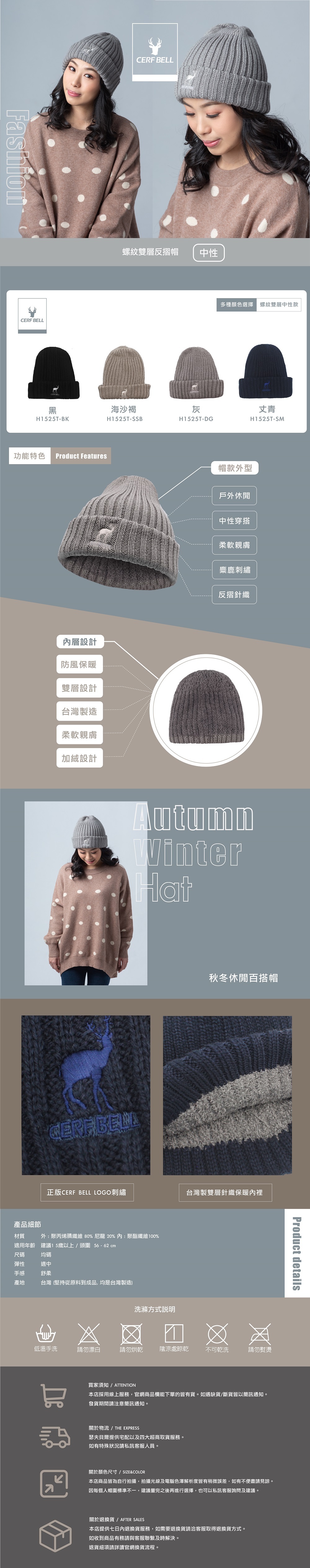 材質特性:雙層針織+羅紋設計+刺繡細節+保暖透氣