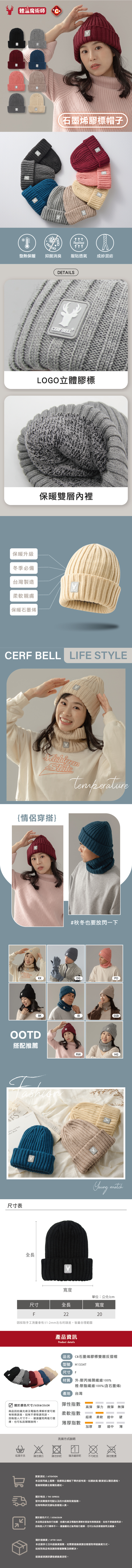 石墨烯瞬熱橡膠標雙層反摺毛帽,結合石墨烯導熱科技,瞬間升溫持久保暖。柔軟針織親膚舒適,雙層結構透氣不悶。橡膠標細節展現潮流風格,反摺設計貼合自在,通勤、戶外與休閒皆百搭。