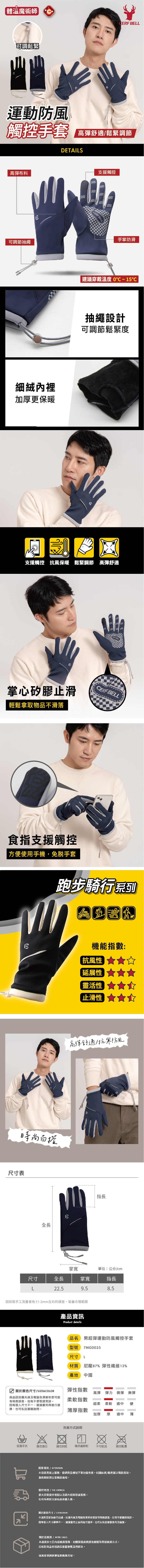 材質特性:尼龍彈性布料、內裏細緻刷毛、指尖觸控、可調鬆緊設計。