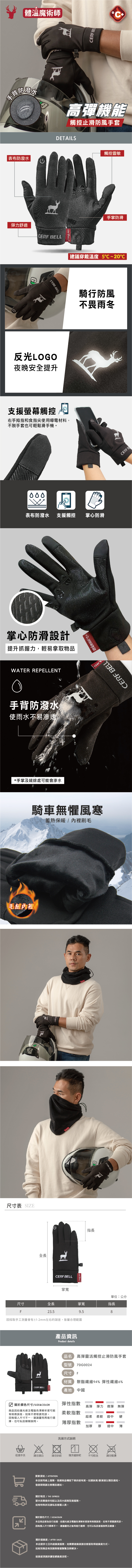 材質特性:高彈面料+防風設計+掌心止滑+靈敏觸控功能