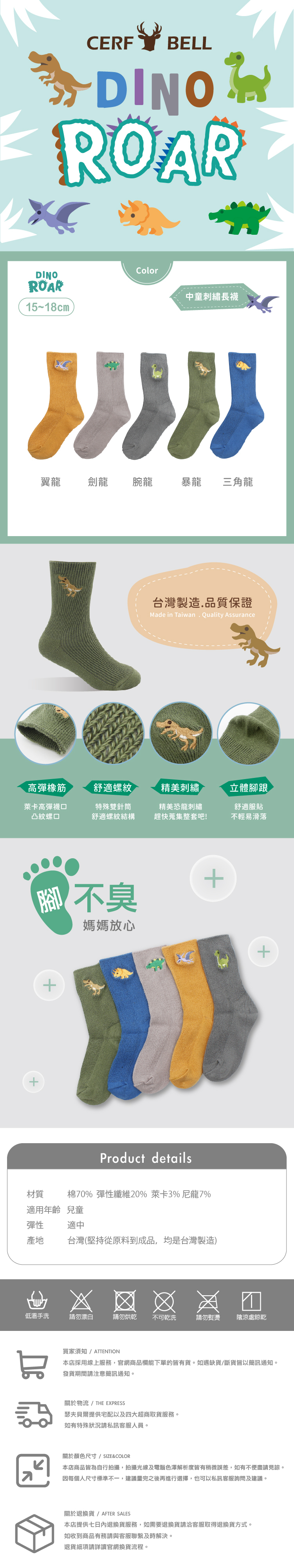 恐龍系列中童刺繡長棉襪,嚴選柔軟親膚棉料,透氣排汗不悶熱。精緻恐龍刺繡點綴,增添童趣活力。長襪高度合腳貼合不易滑落,舒適不緊勒,適合上學、遊戲與日常穿搭,陪伴孩子快樂童年。