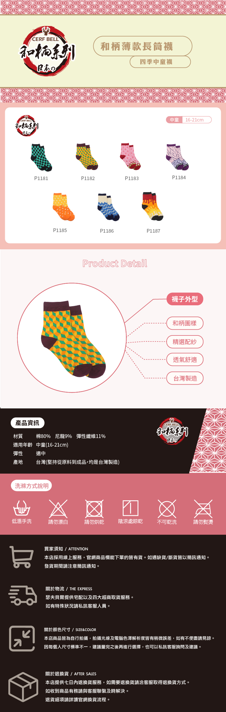 和柄系列兒童日系長棉襪,選用柔軟親膚棉料,透氣排汗保持清爽。結合和柄元素設計,低調又帶有童趣。中筒高度貼合不滑落,耐穿舒適,適合上課、休閒與日常活動穿著,百搭實用。