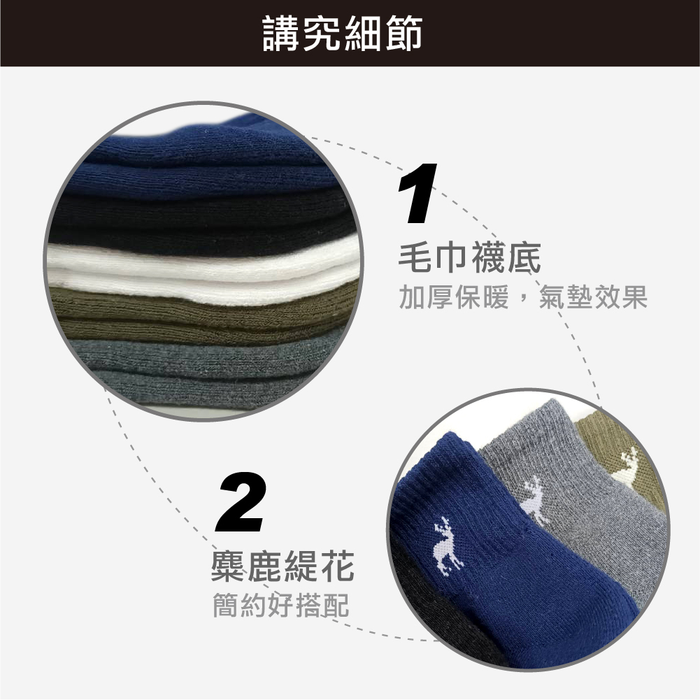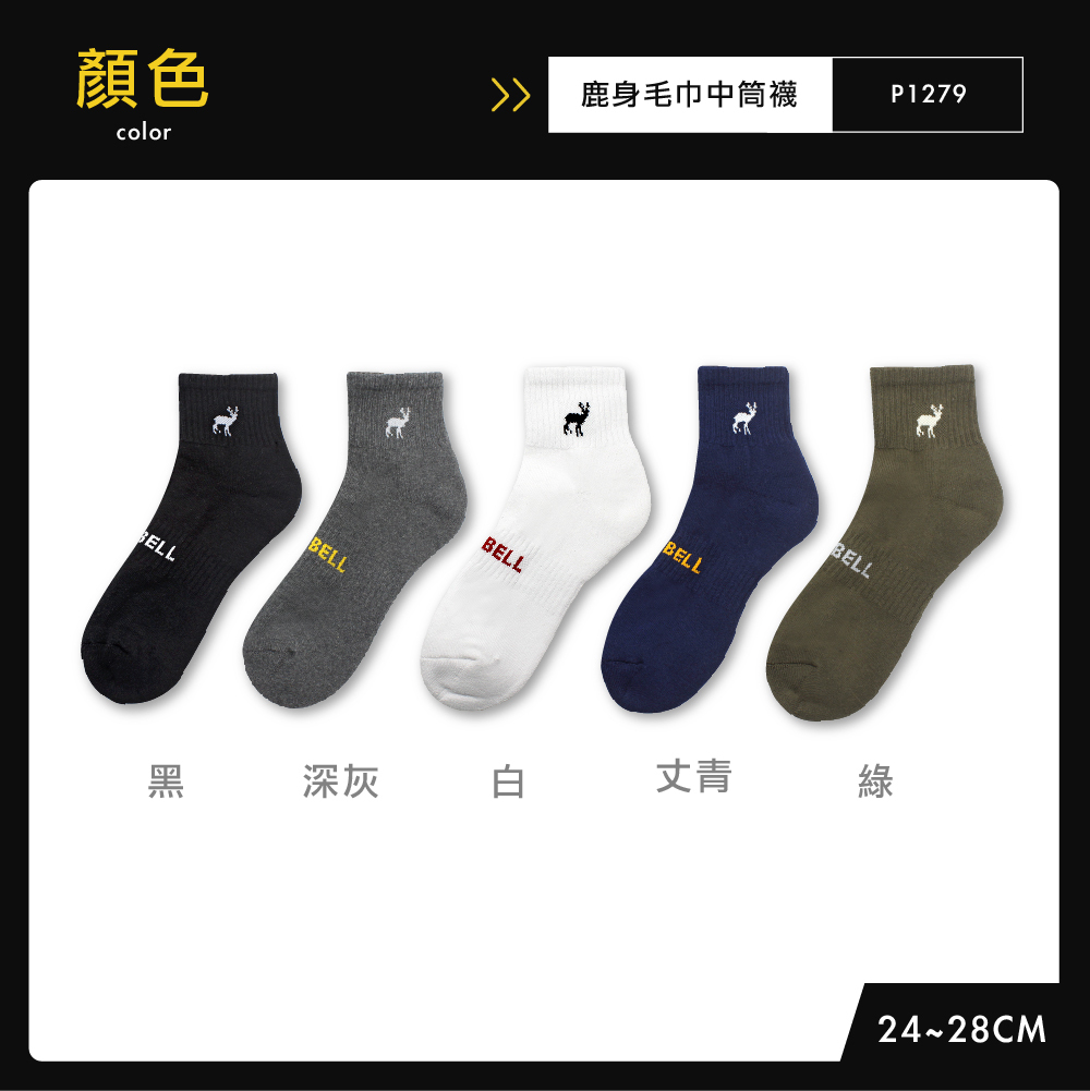鹿身毛巾底棉質中筒襪,嚴選柔軟棉料,透氣排汗保持雙足乾爽。毛巾底設計有效減壓支撐,久走不疲累。鹿身圖案點綴,增添趣味與質感。耐穿不易鬆脫,適合日常通勤、休閒與運動穿搭。